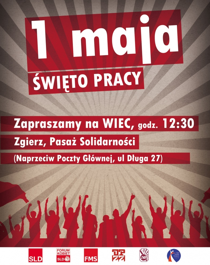 Natomiast SLD w Zgierzu, jak co roku, zaprasza na wiec pierwszomajowy, który odbędzie się w Pasażu Solidarności przy Słupie Pamięci (ul. Długa 27). Start o godz. 12:30.